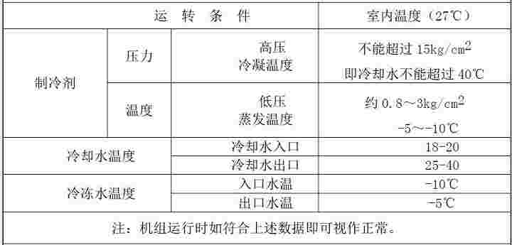 工業冷水機組正常工作的運行參數